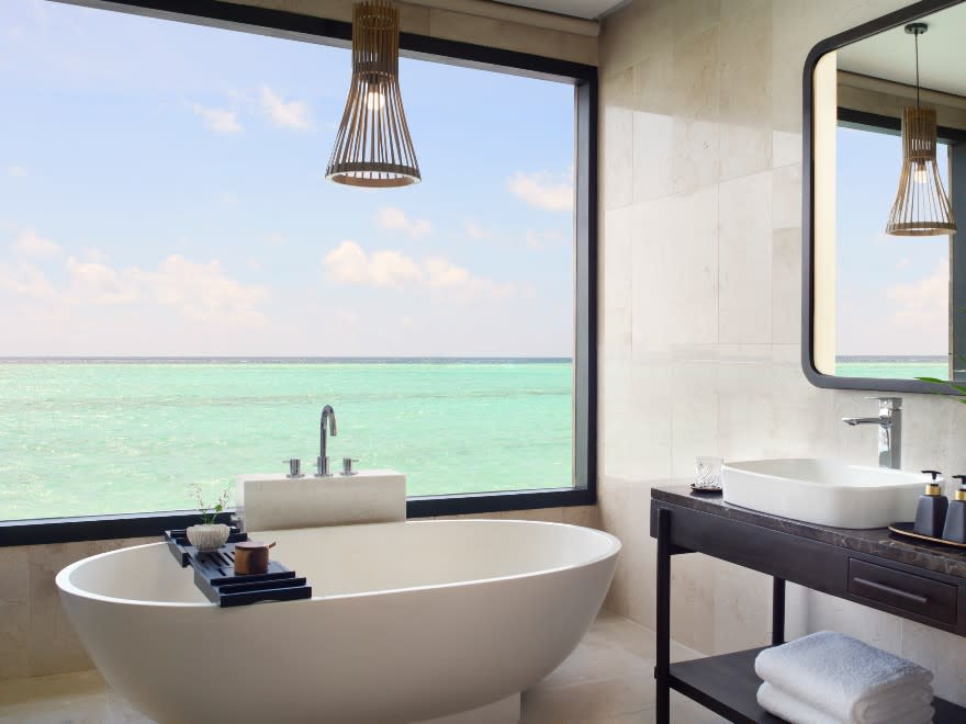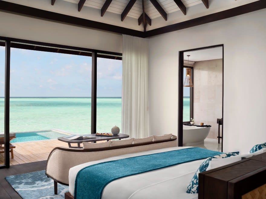 水上泳池別墅從室內到室外均可欣賞到全景。在日光浴平台上享用一杯濃縮咖啡,或在俯瞰寧靜潟湖的獨立浸泡浴缸中享用一瓶葡萄酒。在錯層甲板上,坐在舒適的躺椅上,聆聽舒緩的音樂,度過陽光明媚的日子。享受物質享受和親切的別墅主人服務的額外奢華。沐浴在陽光下,在完全私密的環境中欣賞絢麗的日落,並舒適地欣賞夜空中閃爍的星星,享受完美的馬爾地夫假期。