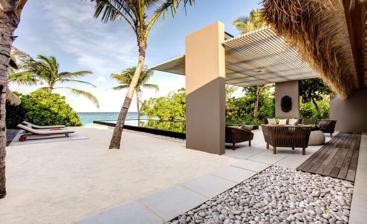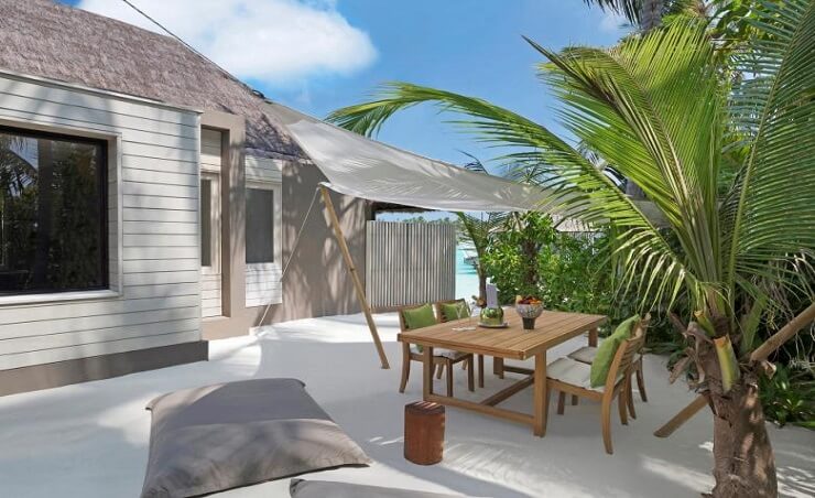 別墅室外設有大面積露臺、熱帶園林和私人海灘,賓客可以在此飽覽無與倫比的熱帶海域風光。私人水療中心坐落於花園之中,賓客可以在這裡享受獨家護理;此外,莊園的瑜珈大師也會應客人要求在此舉行瑜珈或普拉提課程。