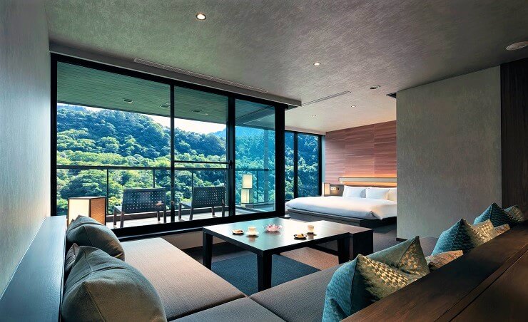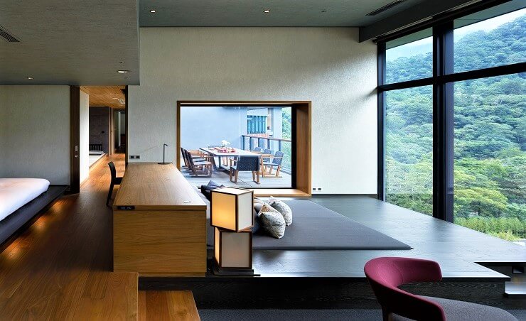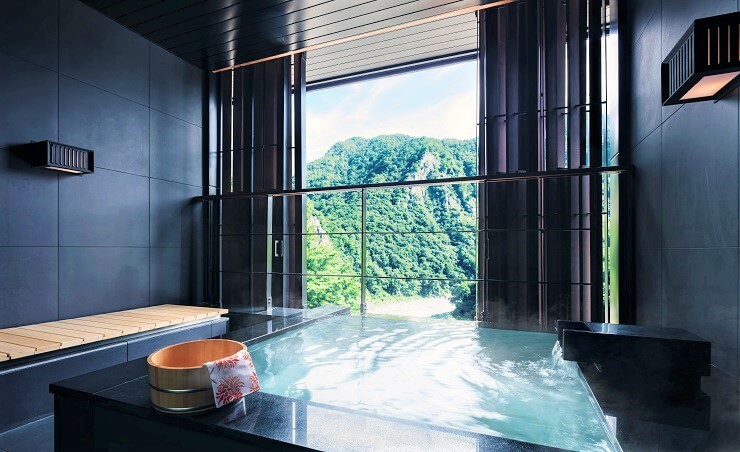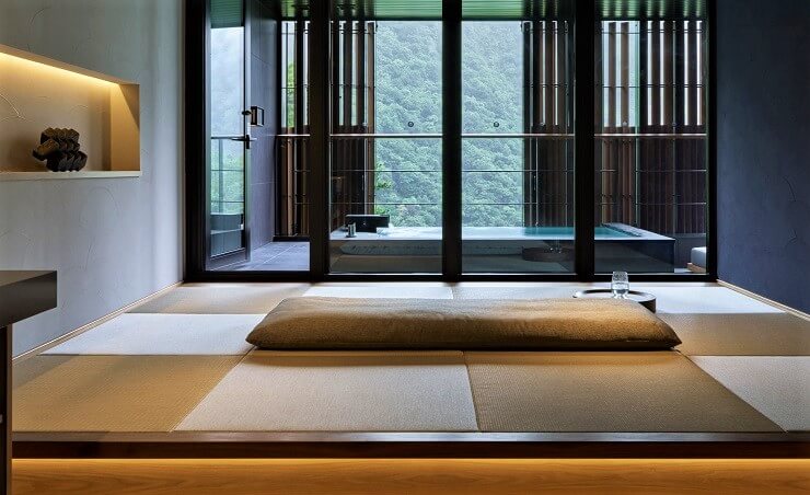 虹夕諾雅谷關的每間客房皆有半露天風呂,待在私密空間內便可獨享,並使用無循環的百分百天然純湯,絕對不用擔心溫泉水是循環重複利用的問題,泡完湯後暖呼呼的身子在堆滿靠墊的臥椅上慵懶,推開百葉窗,欣賞窗外有如山水畫般的美景,瞬間感受到尊榮的奢華感,這不就是夢寐以求的度假啊!