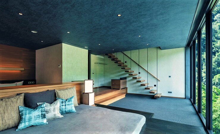 虹夕諾雅谷關的客房採用樓中樓及挑高落地窗的設計,一層是客房、另一層是溫泉專用區,可與家人入住卻又保有私人空間,整面山景如屏風般隨著時間光影呈現不同景色,百葉窗讓您保有泡湯私密感,也能呼吸新鮮空氣;薄霧瀰漫的早晨如同欣賞如夢似幻的潑墨山水畫;夜晚,以天燈為靈感設計的造型燈籠透出柔和溫暖的光,為黑夜添上些許色彩,值得一提的是,星野酒店的採用席夢思的寢具用品,床墊軟硬適中,棉被也親膚舒爽,虹夕諾雅谷關在細微的地方讓旅客感受特別的用心。