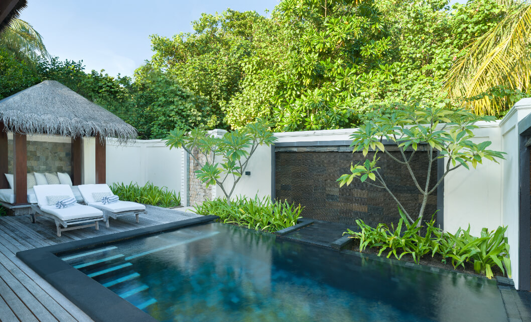 位於 Andiamo Bistro 熱帶花園的美麗家庭泳池。無邊際酒吧旁的無邊際泳池延伸至潟湖,適合成人使用,「兒童區」家庭空間也為年輕 VIP 提供專用兒童泳池。