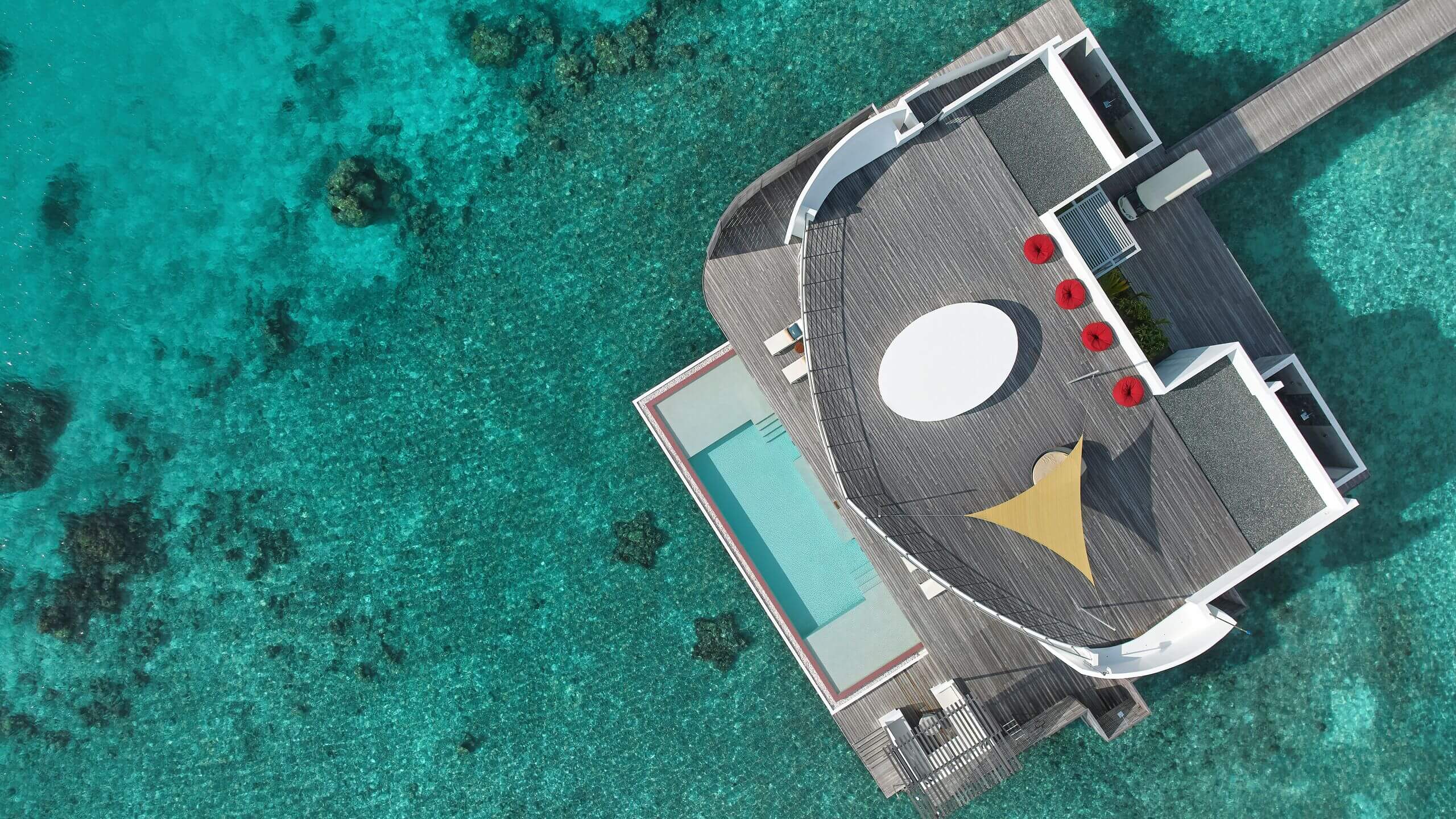 馬爾地夫卓美亞Jumeirah渡假村出自新加坡設計團隊—Miaja之手,有別於馬爾地夫傳統的茅草屋,以複式別墅的概念,將大家對傳統奢華的印象打破,以活潑、鮮明的色彩呈現,融合了奢華遊艇的氣派和熱帶海島的氛圍,打造67棟頂級別墅,每房百坪以上,且皆享有5米高的大型私人屋頂陽台,整面落地窗的海景視野以及私人泳池,再搭配獨特的設計家具,展現奢華的新定義。