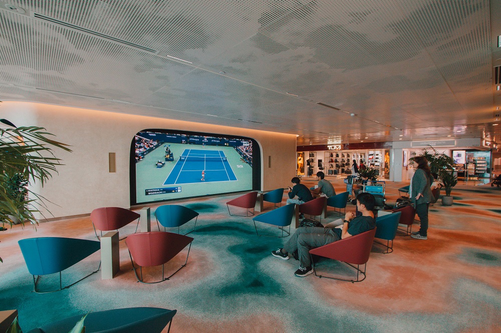 就像天窗一樣,這個數位天空為現實世界打開了一扇頭頂的窗。它與機場的天氣系統集成,即時模擬日光和天氣條件。從日出到繁星密布的天空,這裡是您在登機前沉浸在奇觀之中的好地方。