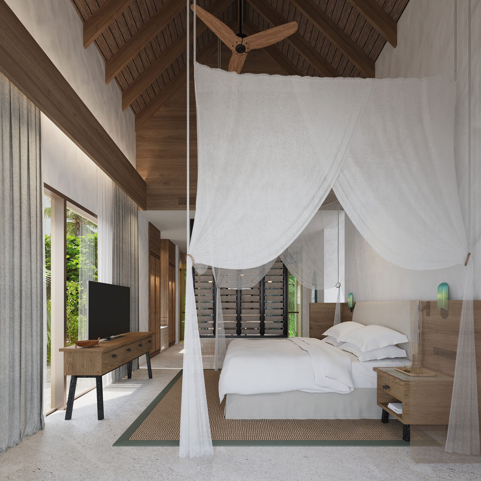 海灘別墅坐落在島嶼日落和日出一側的熱帶植被中,可直接通往海灘和潟湖。客房設有帶戶外淋浴的浴室以及室外陽台。您可以享受舒適的室內環境,也可以坐下來放鬆身心,欣賞潟湖美景。