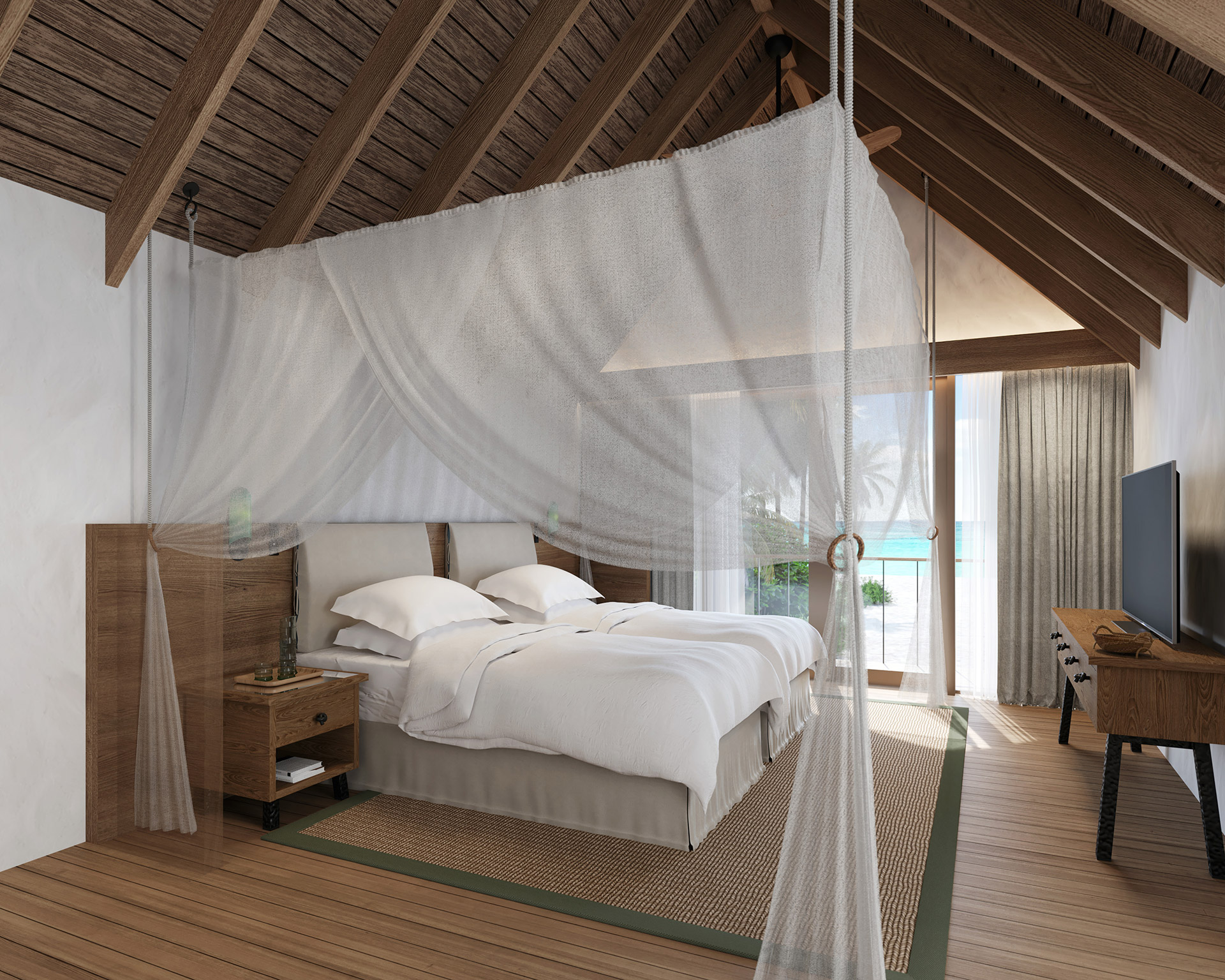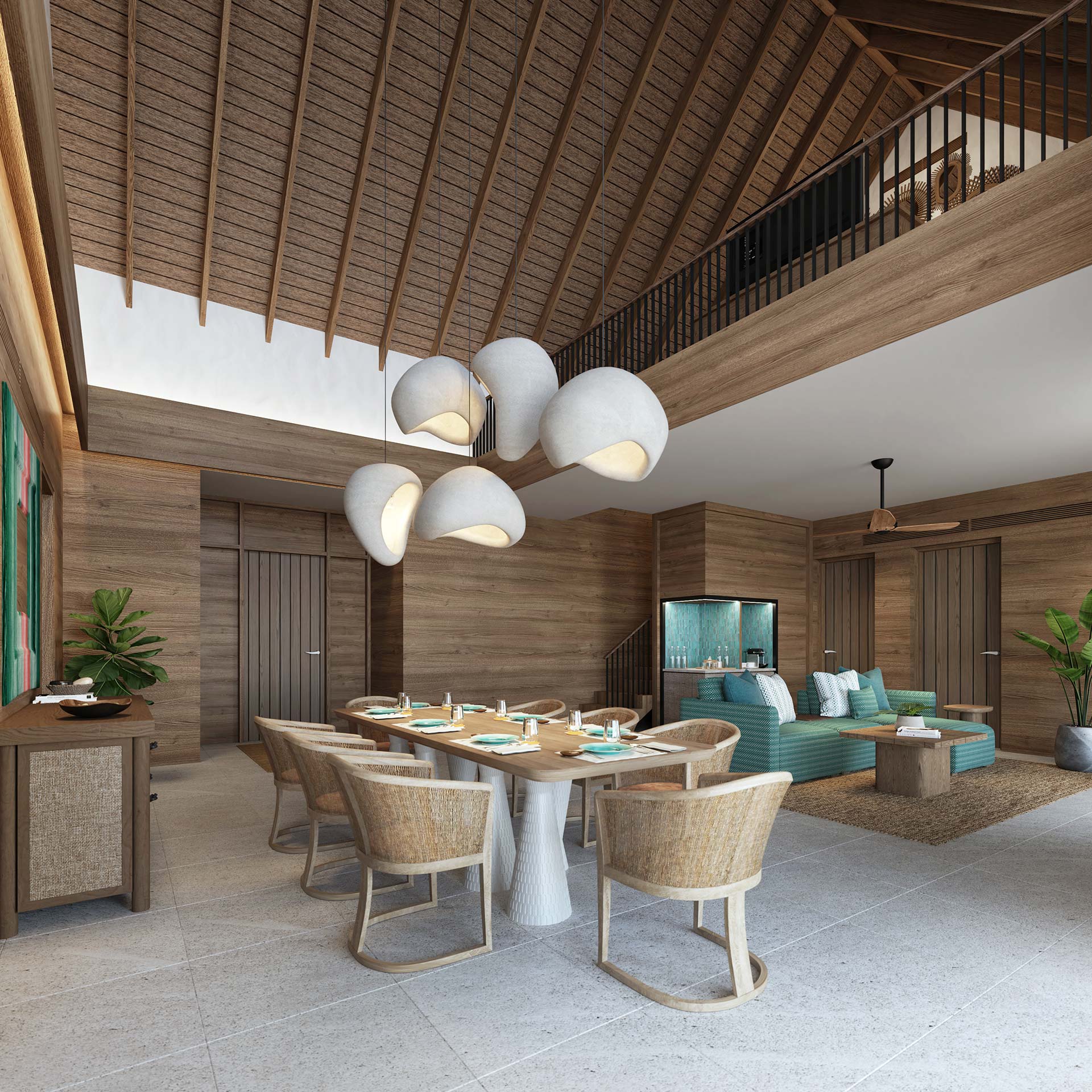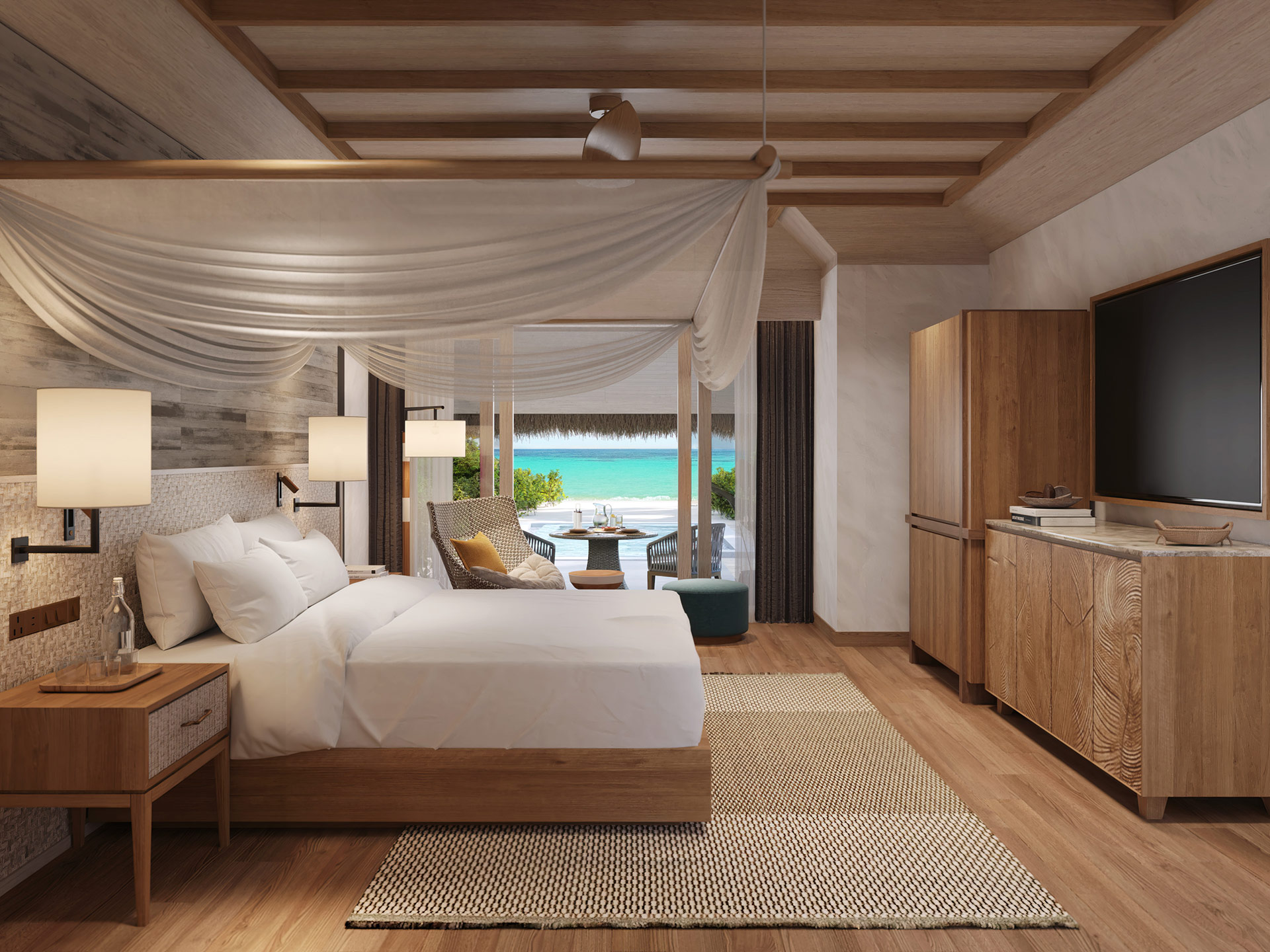 熱帶海灘度假勝地! 該島擁有馬爾地夫最大的海灘之一,細白的沙灘¸ 別墅大部分設有私人游泳池,採用可永續環保材料建造,室內設計融合了自然優雅與現代氛圍。
