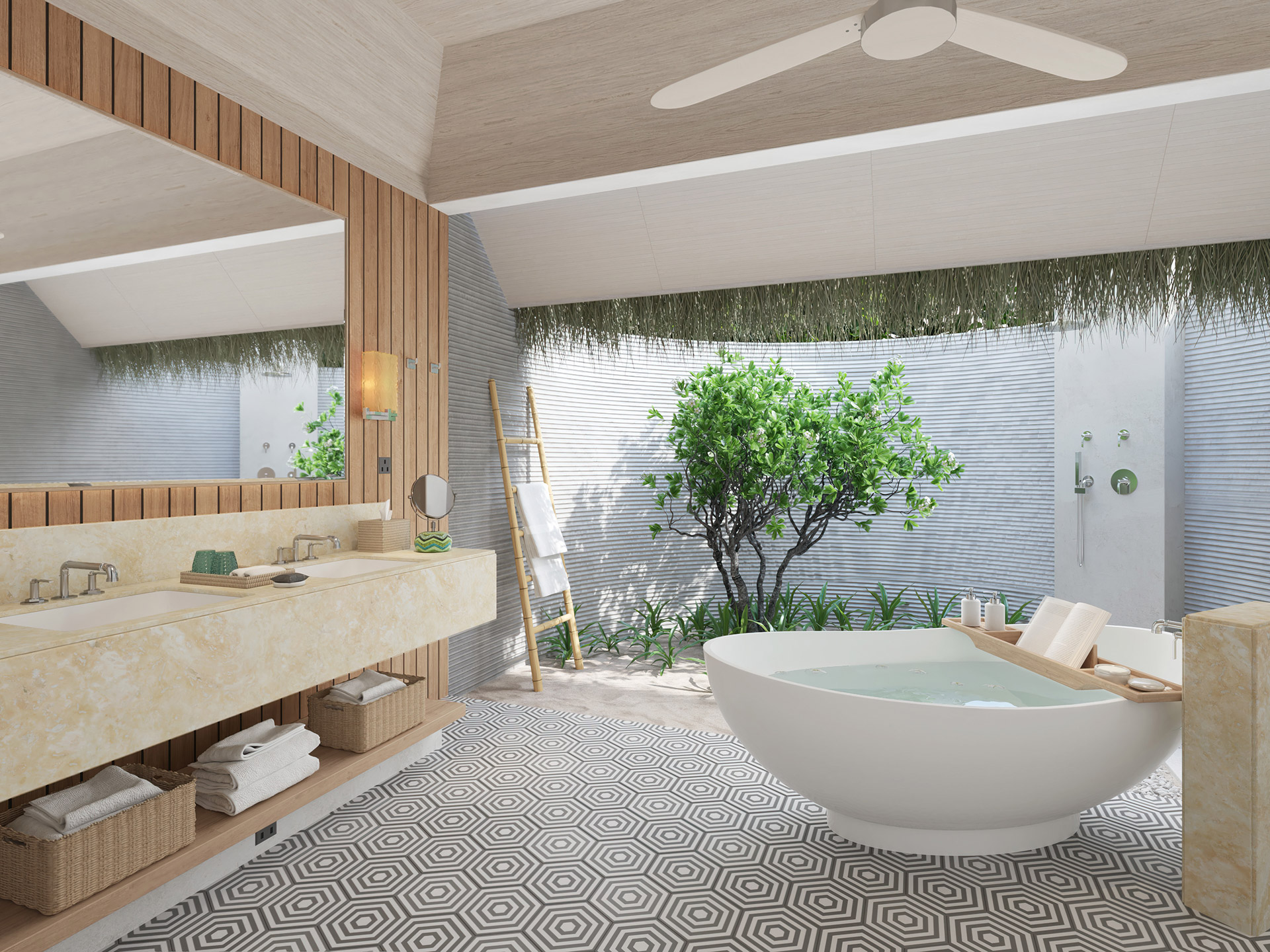 • 空調浴室配有超大浴缸和室外花灑淋浴